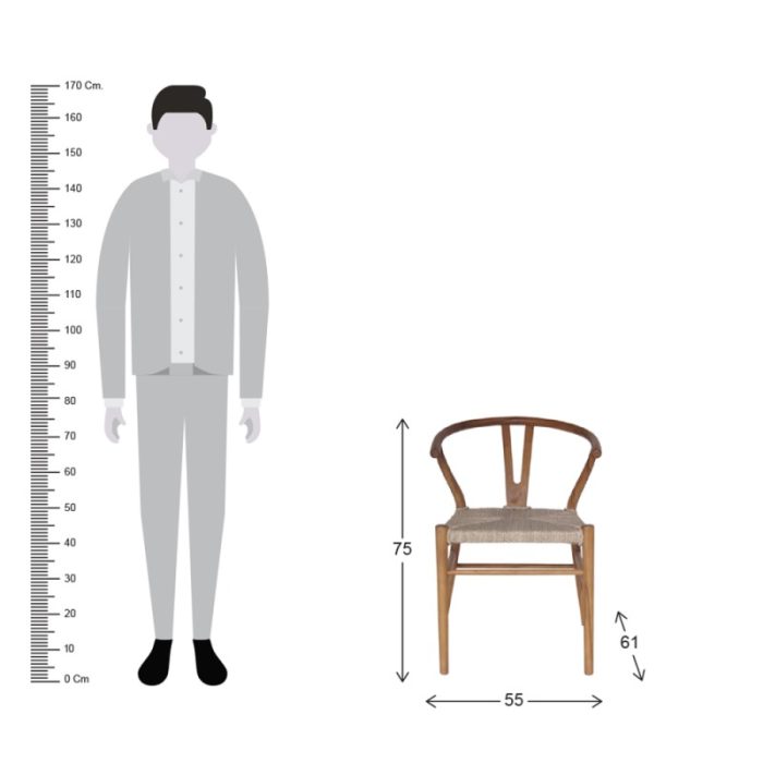 Kursi makan dengan desain minimalis skandinavia. Terbuat dari kombinasi kayu jati dan anyaman sintetis. Sesuai untuk restaurant/cafe dengan suasana cozy.